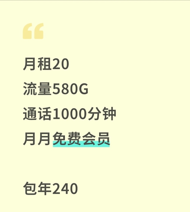 大流量卡[庆祝]✅月租20元✳️580G全国流量✳️1000分钟通话每月会员任选一...