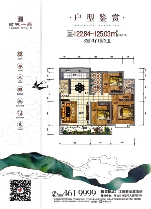 翰林一品小区 三室两厅两卫 125平 120平 多层洋房 大阳台 落地窗 四千出...